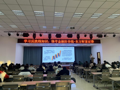 为增强同学们的反洗钱意识,提升金融风险防范能力,筑牢金融安全防线。11月11日,互联网金融专业联合东方财富证券股份有限公司大庆热源街证券营业部在二号教学区2508教室召开了第37期易湖金融论坛,此次论坛主题为“学习反洗钱知识,恪守金融防非线”活动。本次活动由互联网金融专业主办,Financial充电宝社团承办,全校150名学生参加,企业导师刘丹丹讲解。
