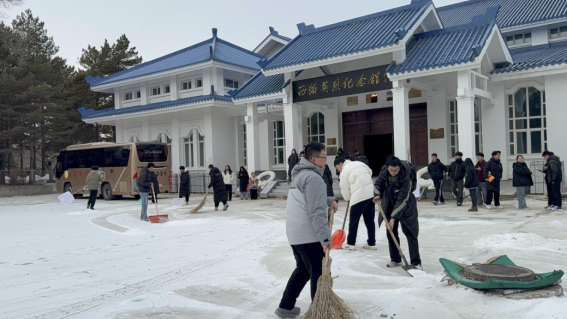 研学尾声,宋雪微老师带领全体学生拿起工具,对烈士陵园道路的积雪进行清扫,大家干劲十足,用双手为过往行人开辟出安全通畅的通道,以实干之举诠释对英烈精神的传承与践行。风景221班董帅说,学习革命先烈的英勇奋斗事迹,使我明白今天幸福生活的来之不易,接下来我一定努力奋斗,报效国家。