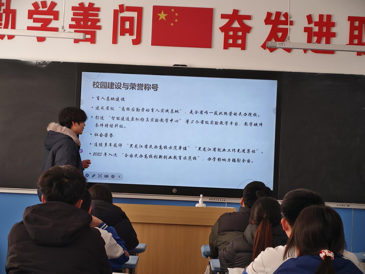 赵明卓同学针对学弟学妹们关心的“如何平衡专业课学习与实践能力培养”问题,给予建设性建议,结合齐齐哈尔工程学院的实践教学模式,分享了自己参与校内工程管理模拟实训、项目现场见习的收获,给出了制定学习计划、调整备考心态的具体建议。此外,赵明卓通过展示校园活动照片、专业实训视频,生动介绍了学校的师资力量、实训平台和就业优势,让学弟学妹们对高校生活与专业发展有了更清晰的认知。