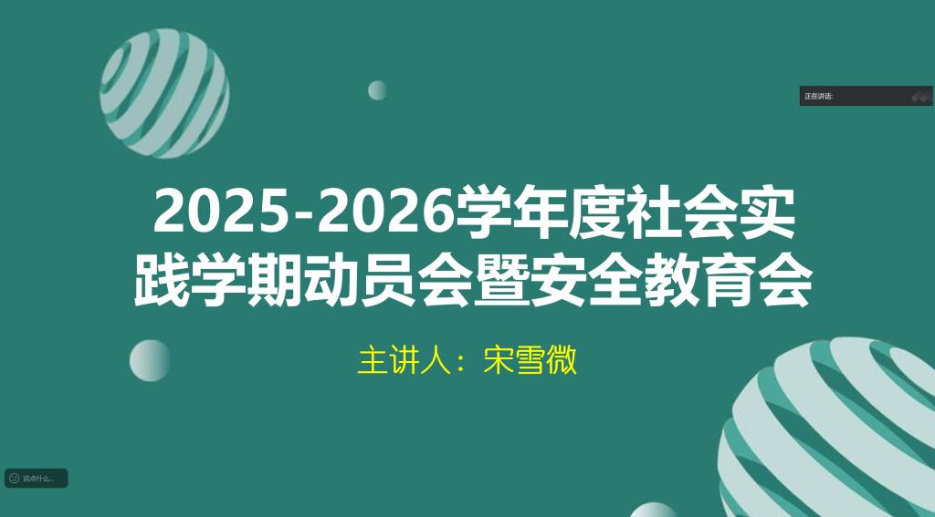 为明确社会实践学期任务要求,引导学生在实践中锤炼品格、增长才干,同时筑牢寒假及实践期间安全防线,12月29日,辅导员宋雪微线上召开2025-2026学年度社会实践学期动员会暨安全教育会,全体学生参会。