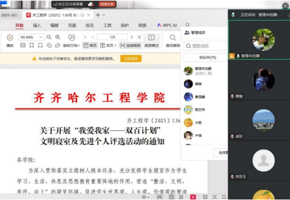会上,刘娜对《关于评选2025年学生先进集体、先进个人的通知》和《关于开展“我爱我家——双百计划”优秀寝室及先进个人评选活动的通知》进行详细解读,为同学们具体讲解了评选的内容、要求,帮助同学及时了解学校的评奖评优政策,激励同学发奋学习。此外,刘娜还着重强调了学风建设问题,提醒同学们要重视上课纪律、早晚自习出勤率,优化学习方法,提高学习效率。