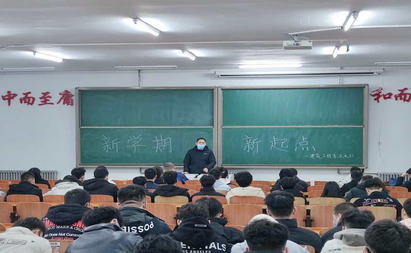 新学期伊始,为贯彻落实学校关于做好开学初有关学生工作和疫情防控工作的要求和部署,建筑工程系各辅导员立足本学期工作重点,将疫情防控与思想政治教育相结合,利用自习时间开展新学期主题班会。
