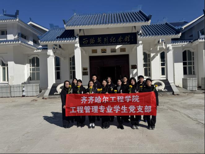 清明寄哀思,英烈永铭记。为深入学习贯彻习近平新时代中国特色社会主义思想,传承红色基因,厚植爱国情怀,加强学生党员党性教育,深化爱国主义教育实践,引导学生党员铭记英烈事迹、传承爱国精神,在清明节来临之际,工程管理专业学生党支部组织全体师生党员前往西满烈士陵园,开展“缅怀革命先烈、赓续红色血脉”清明节扫墓主题党日活动,以此缅怀革命先烈,感悟初心使命,汲取奋进力量。西满烈士陵园作为东北解放区第一座烈士陵园,安葬着600余位革命英烈,是全国爱国主义教育示范基地,承载着厚重的革命历史和崇高的英烈精神,为本次主题党日提供了生动的实践课堂,助力学生党员筑牢爱国信念、补足精神之钙。