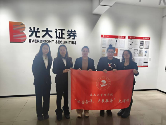 为深化产教融合,精准匹配企业用人需求,助力学生高质量就业,1月26日上午,在土木与管理学院党委书记、院长徐明的推动下,财务管理专业和互联网金融专业的教师赵靖宇、张艳丽、李晶走访光大证券股份有限公司,开展“校企合作,产教融合”调研活动。