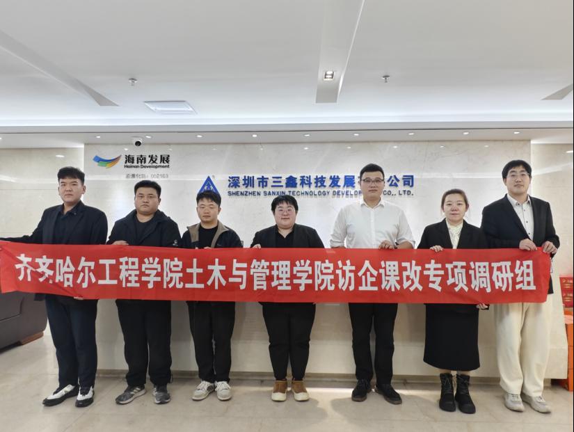 为落实“深化产教融合、校企合作”要求,1月30日-31日,在学校副校长张静,土木与管理学院党委副书记、院长徐明的指导下,土木与管理学院工程造价专业曲梦露、土木工程专业钟美慧、互联网金融专业沈斯文、付鞑、工程管理专业王梓玮一行赴深圳市三鑫科技发展有限公司、深圳前海文艺复兴投资基金管理有限公司、中国水利水电第八工程局有限公司交流走访,与公司人力资源部经理廖佛伟、人力资源部主管王棋隆、项目经理马钢涛围绕校企合作、实践教学、人才培养、就业拓宽等议题深入交流,我校在岗校友代表参与座谈,搭建起协同育人桥梁。