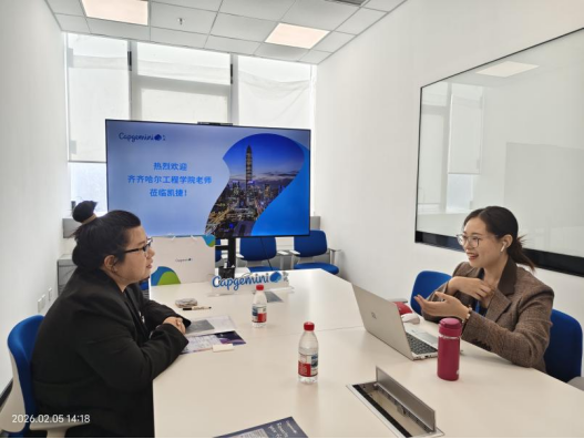 在双方的座谈交流中,凯捷中国校企合作主管刘姝岳详细介绍了公司的发展历程、核心业务板块以及对财务管理人才的能力需求,特别强调了数字化背景下,具备业财融合思维、数据分析能力和国际化视野的复合型财务人才的稀缺性。赵靖宇介绍了齐齐哈尔工程学院的办学特色、专业的课程体系和人才培养成果,并提出了共建实践教学基地、联合开发课程、开发微专业、接收学生实习就业等合作设想。随后,校企双方还就学生实习项目的内容、考核标准以及教师挂职锻炼的具体安排等细节进行了初步沟通,达成了诸多共识。
