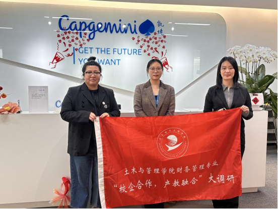 为深化产教融合,探索校企协同育人新模式,2月5日下午,在土木与管理学院党委书记、院长徐明的推动下,财务管理专业教师赵靖宇和许佳宁前往凯捷咨询(中国)有限公司开展企业调研,就校企合作模式创新、人才培养升级等内容展开洽谈,为双方后续合作奠定坚实基础。