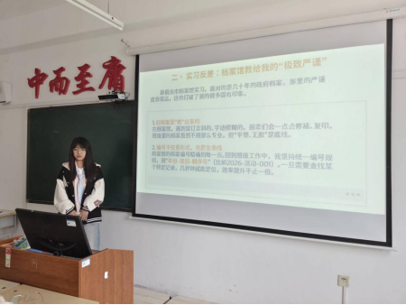 此次培训由土木242班班级档案员姜俊娇主持。她结合自身在学校档案室学习以及专业实践学期在市档案馆的实践经验,与在场档案员进行分享。她提到档案工作并不是简单的文件收纳整理,而是留存同学们的成长轨迹,承载着宝贵的校园记忆。她分享自己在实践中学到的严谨工作准则,讲解档案修整、规范编号等实操技巧,用具体实例让大家直观地感受到档案工作精细的核心要求。最后,刘丽娜针对班级档案日常检查标准和整理规范做出强调,细化班级档案建设要求,明确班级概况更新、各类表格的填报、会议记录留存等具体细节。