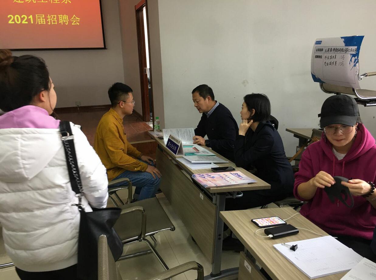 为进一步帮助毕业生实现高质量就业,促进与校企合作单位资源共享、双赢发展,11月18日下午,中国三冶集团有限公司、中铁四局集团路桥工程有限公司、南通达欣工程股份有限公司以及黑龙江瑞兴工程管理咨询有限公司等十四家企业,在二教2508展开企业招聘会,建筑工程系2017级全体学生参加了现场招聘会。建筑工程系教学副主任徐明与多家企业针对人才需求、岗位能力、职业素养等方面进行沟通,并有企业提出校企合作意向。
