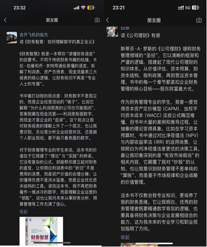 小组成员杨俊杰分享的《财务智慧:如何理解数字的真正含义》,以通俗语言拆解三大财务报表核心逻辑,打破了财务知识的专业壁垒。书中强调财务数字是企业经营的“镜子”,如“利润≠现金”“负债是资本结构优化工具”等观点,搭建起理论与实践的桥梁,帮助大家建立财务直觉,将财务知识转化为理解企业运营的“钥匙”。
