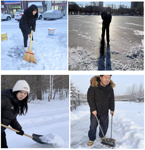 1月9日,土木与管理学院孙子然小组四名成员参加志愿服务活动帮助社区扫雪。