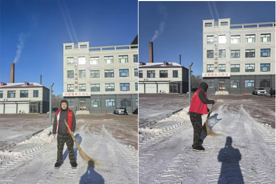 1月11日早上,克东县积雪封路。土木专升本251班于海洋和孙佳伟立刻拿起扫帚铁锹,加入克东县社区扫雪志愿队伍。寒风刮得脸颊生疼,呼出的白气转瞬消散,可手上的动作丝毫不敢停。他们和其他志愿者们分工协作,铲的铲、扫的扫,积雪一点点被清运干净,原本湿滑的路面渐渐变得平整通畅。