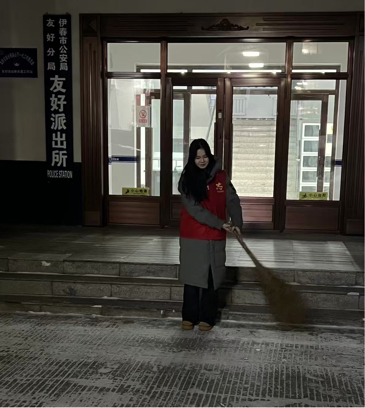 为响应冬季道路安全保障号召,本周土木专升本251班孙雨皓以志愿者身份参与友好派出所辖区扫雪除冰实践活动,协同民警及其他志愿者完成重点路段积雪清理,保障道路通行顺畅。