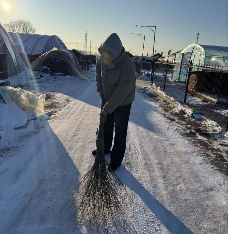 1月7日上午土木专升本251班公维浩在绥化市北林区永安满族镇参与乡村志愿服务。在回家的第一周就下起鹅毛般大雪,该同学在乡下积极配合村书记与其他志愿者共同清理道路积雪。