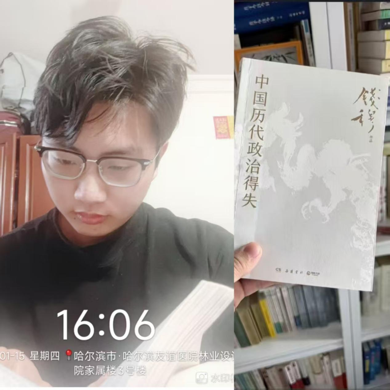 土木与管理学院互金241班李泽昊于2026年1月12日至15日研读《中国历代政治得失》,以此书来感悟历史的厚重与传承。