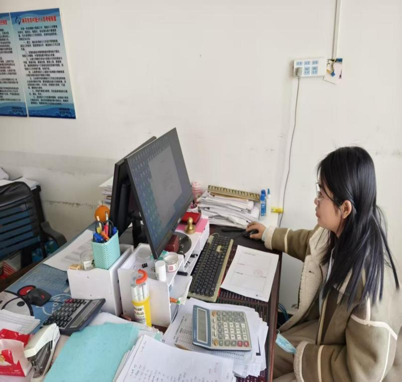 来自智能建造242班的王雪慧,正坐在社区民政窗口前,快速敲击键盘录入居民信息。作为志愿者,她的核心工作是协助整理社区居民档案,将纸质材料数字化录入系统。短短两周,她已完成300余份档案的录入与核对。