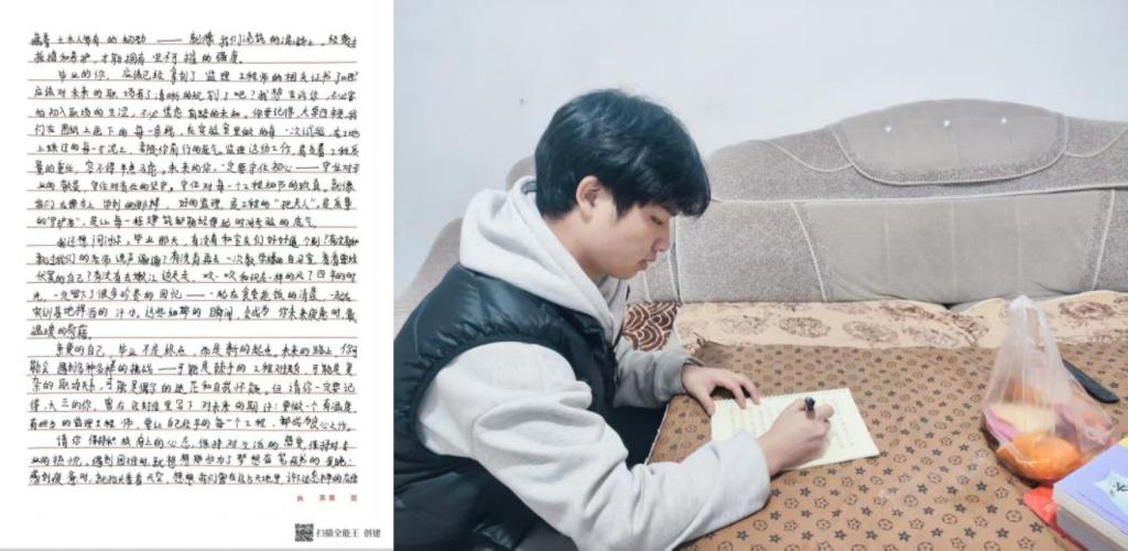 紧接着组员郑涛的信件核心体现了“贯通与担当”——他将课堂所学的专业理论,与长远的职业理想、社会建设责任紧密串联,抒发了土木学子学以致用、筑造未来的抱负。最后组员梁继作为收官者,其信核心在于“细腻与深耕”——以独特的细腻视角,畅想了在工程领域深入发展与人文关怀并重的成长路径,为项目增添了柔韧而深远的一笔。