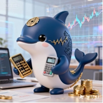 财务管理专业吉祥物“金小算”以象征智慧敏捷的海豚为原型,紧扣财务管理专业“稳健核算、价值增值、风险管控”的核心特质。3头身Q版流线造型搭配金融金、深海蓝主色调,凸显专业的理性质感。额头铜钱印记,具象化财务专业符号;左手托举传统算盘,右手握持数字金融终端,融合传统理财智慧与现代财务科技,尾部金币堆叠造型象征财富增值,传递“精于核算、创造价值”的专业内涵。