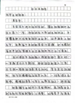 1月6日,土木与管理学院造价251班刘钰琪在社会实践学期参与“时间胶囊,致信未来”项目,以长仿宋字体工整地写下致毕业时自己的信。