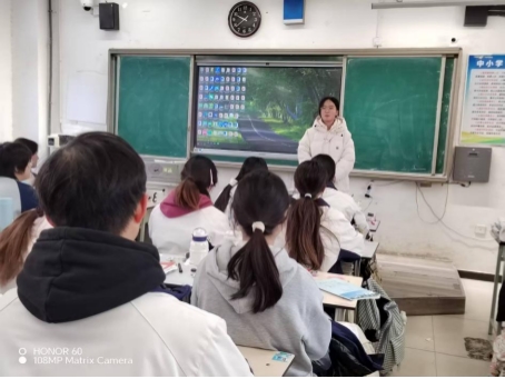 随后,范孟杰走进教室,结合自身备考经验及大学经历,和学弟学妹们进行了分享,并介绍了齐齐哈尔工程学院。她重点介绍了齐齐哈尔工程学院的办学特色、课程体系、校内的场馆设施及校企合作项目,帮助大家更好地了解齐齐哈尔工程学院的办学特色。她鼓励学弟学妹们在面对压力时保持良好心态,明确目标,积极备考。