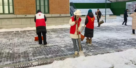 在志愿服务期间,胡馨月积极参与社区扫雪除冰行动,手持铁锹等工具,与其他志愿者一同对辖区内的道路、广场等公共区域的积雪进行清理。