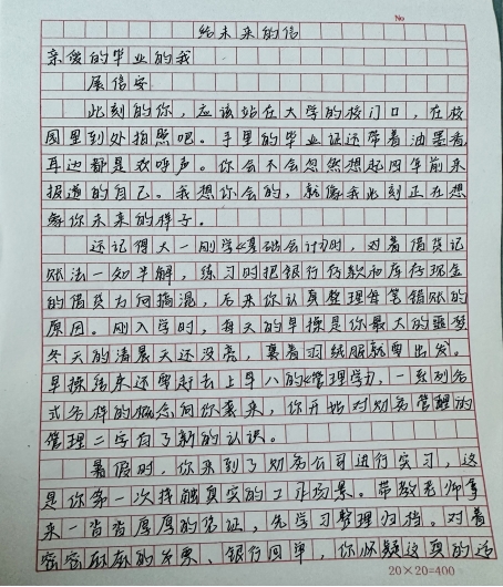 从最初的“完成任务”心态,到面对白纸时的深刻自省,她在信中不仅展望了未来的职业蓝图,更坦诚剖析了当下的迷茫与困惑。这一过程让她深刻领悟到,“致信未来”的意义在于以笔为锚,在对未来的承诺中明确当下的方向,让每一个迷茫的时刻都成为成长的注脚。