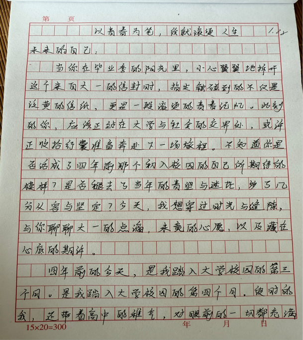 “给未来自己写信”早已超越了简单的情感表达,成为当代大学生与时光对话、与自我和解、与梦想同行的独特方式,相信在时光的见证下,那些藏在字里行间的初心与期许,终将化为成长路上的累累硕果。