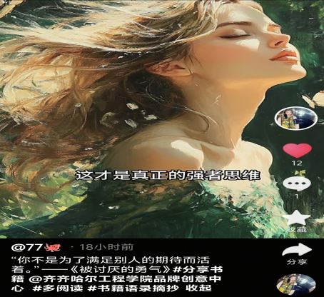 曹静推荐了书籍《被讨厌的勇气》,并发表了新媒体作品,以哲思对话拆解阿德勒心理学,抛开过往执念,教我们挣脱他人期待、直面人际关系烦恼,学会课题分离,拥有被讨厌的勇气,活成真正的自己。