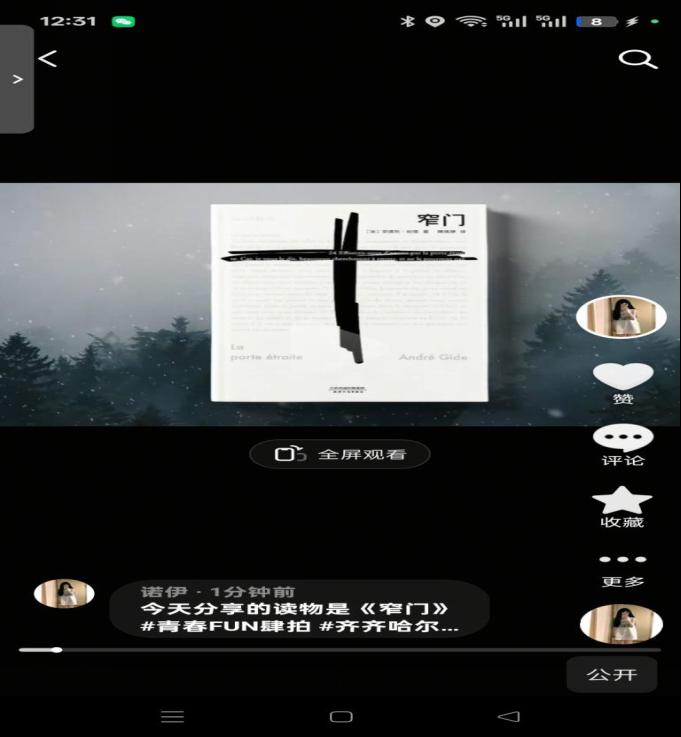 陈硕在视频中分享读书感受:“阅读前,我特意查阅了纪德的创作背景与《窄门》的宗教文化语境,了解到‘窄门’源自《圣经》中‘你们要进窄门’的箴言,也读懂了故事背后作者对人性与信仰的深刻叩问。初读时,杰罗姆与阿莉莎的灵魂相依让我动容,但阿莉莎因极端信仰刻意疏远爱人的选择,又让我陷入困惑。我反复梳理两人的书信与心理描写,逐渐理解了她在神圣与世俗间的撕裂:她把对爱情的纯粹执念,捆绑成了自我囚禁的枷锁。”