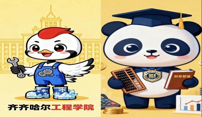 周驿利用AI工具为齐齐哈尔工程学院设计3D卡通吉祥物融合了丹顶鹤的元素,为财务管理专业设计“大熊猫会计师”以算盘和会计书,借此彰显校院与专业特色,提升形象辨识度和感染力。
