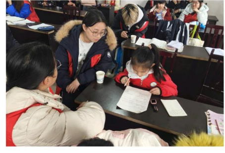 志愿活动以“学业帮扶+陪伴成长”为核心展开:在辅导课堂上,财管232班杨艳和其他志愿者分工协作,针对孩子们的寒假作业难点进行逐题讲解,用通俗的语言拆解知识点,引导他们独立思考。课间他们还设计了结合家乡特色的趣味问答,激发孩子们的学习兴趣,增进他们对家乡的了解。