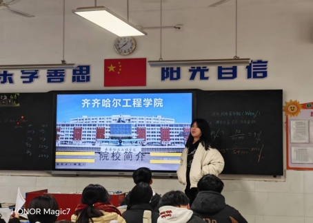 1月22日,土木与管理学院财管251班仝胜男重返高中母校,开展以“齐齐哈尔工程学院适合我”“齐齐哈尔工程学院成就我”为主题的宣讲活动,为学弟学妹搭建起了解大学、规划未来的桥梁。