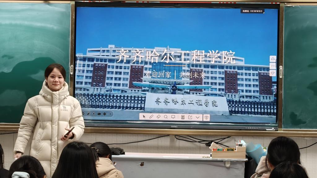 土木与管理学院互金251班李思思于2026年2月3日赴高中母校开展齐齐哈尔工程学院宣讲活动,向学弟学妹们分享校园生活与学习心得。