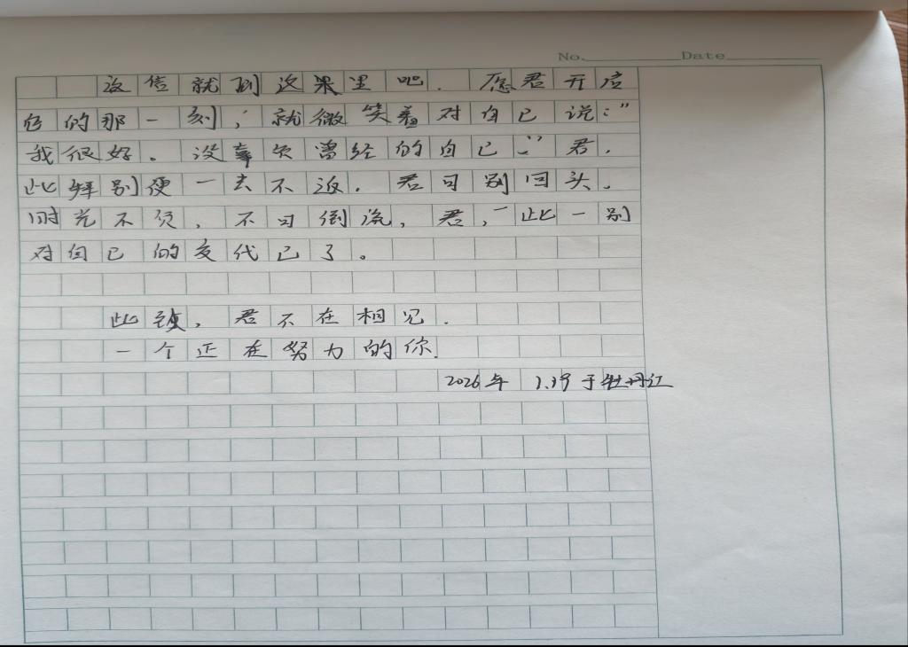 王欣宇用笔写下对学业困惑、对未来的迷茫和对职业憧憬,对生活抱有期待,既是对青春的郑重记录,也为未来的自己留下来时路的痕迹。所走的每一步都是作数的