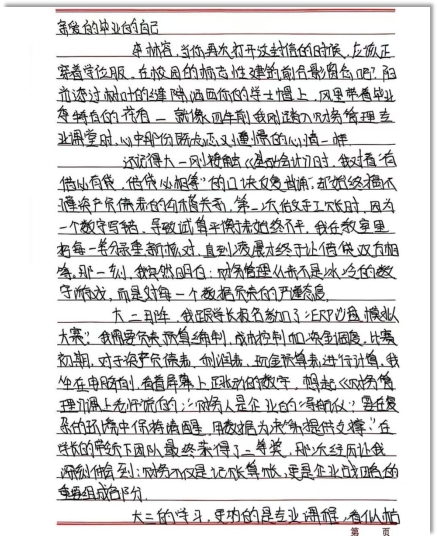 李林容圆满完成“时间胶囊,致信未来”主题实践,以书信形式写给大四的自己,重温财管专业学习的初心与追求,明确个人学业规划与成长目标,坚定未来职业发展方向与从业信念,在深耕财务与管理专业素养、提升综合实践能力的道路上稳步前行,为从容迎接未来挑战、顺利步入职场、实现财经领域职业理想凝聚不竭动力。
