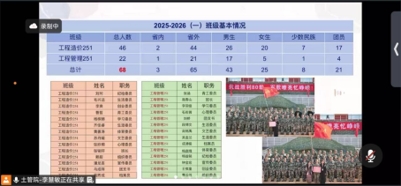 2月26日,土木与管理学院25级工程造价、工程管理专业召开2025-2026学年度第二学期线上家长会暨班会,辅导员李慧敏主持会议,工程造价专业长曲梦露、工程管理专业教师王梓玮出席,专业全体学生及家长参会。