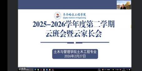 为护航土木工程专业2026届毕业生顺利完成毕业论文(设计)、严守学术诚信与校规校纪,压实家校协同育人责任,辅导员刘子豪于2月27日召开2025-2026学年第二学期云班会暨云家长会。会议由辅导员刘子豪主持,土木2022级、专升本(二年制)2024级 全体学生与家长线上参会,会议聚焦毕业资格、学位授予、毕业论文学术规范、校纪校规红线、返校要求等关键事项进行专项解读。