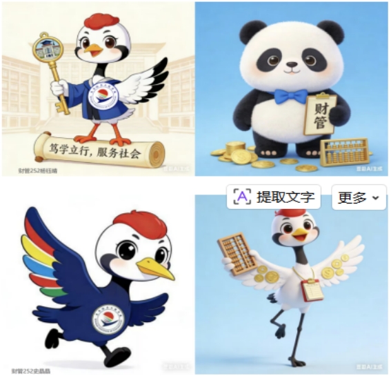 此次创作不仅成功打造出学院专属吉祥物,更让成员的团队协作、创新实践与数字工具应用能力得到全面提升,充分展现了小组成员的强大凝聚力与多元的创意设计能力。