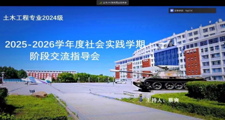 2月12日,土木与管理学院辅导员蔡爽召开第三次社会实践学期指导汇报会,土木24级各实践小组组长及生涯导师参会。