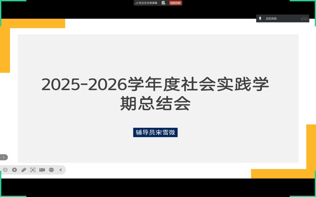 最后,宋老师表示,本次总结会不仅梳理了成效、查摆了不足,更凝聚了共识、明确了方向。希望全体同学以此次总结会为契机,正视自身不足、汲取优秀经验,在今后的学习和实践中,继续保持积极进取的态度,主动参与各类社会实践活动,在实践中增长才干、锤炼品格,努力成长为兼具理论素养与实践能力的新时代青年。