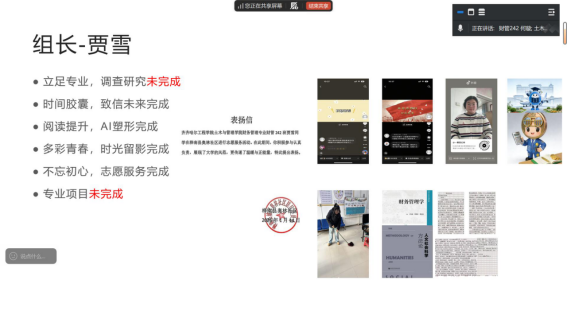 交流会上,参与上一阶段社会实践学期的同学通过抽签的方式随机进行汇报。贾雪小组详细介绍了上一阶段的实践内容以及实践进度,分享了社会实践中的收获、遇到的难题及解决思路,展现了当代大学生脚踏实地、勇于探索的精神风貌。其余各小组汇报结束后,同学们相互点评、各抒己见,在肯定他人实践亮点的同时,提出切实可行的优化建议,现场交流氛围浓厚。