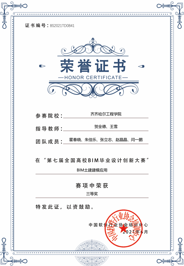 第七届全国高校BIM毕业设计创新大赛落下帷幕,齐齐哈尔工程学院土木工程专业、工程管理专业共有8支团队参与比赛。土木工程专业2018级学生霍春晓、朱佳乐、张立志、赵晶晶、闫一鹏组建的“筑梦团队”获得“BIM土建建模应用”赛项三等奖;由石依凡、常哲强、石有峰、郝雷鹏、马晓宁同学组建的“白马非马”团队获得优秀奖;工程管理专业2019级苗晶和2020级学生杨春生、关晨旭、胡雯静组建的团队获得“BIM建设工程管理应用”赛项优秀奖;工程管理专业2018级吴世龙和2020级学生王涵、程正宇、陈贻民组建的团队获得“招投标应用”赛项优秀奖。