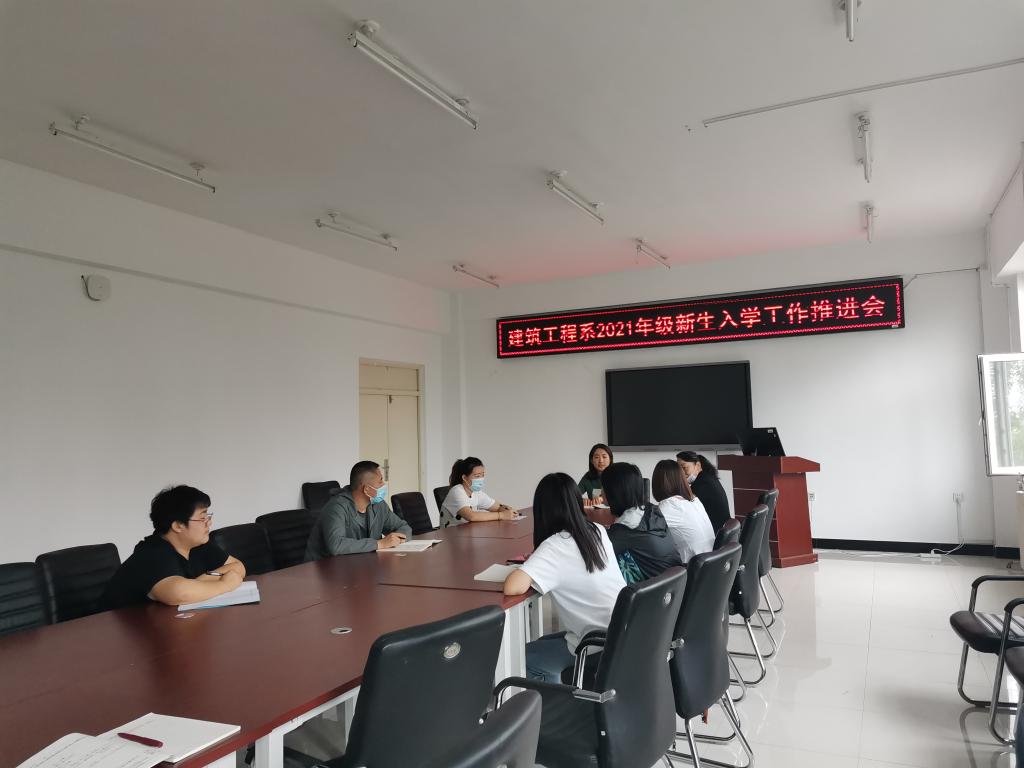 8月13日上午,建筑工程系在2号教学区2409会议室召开“建筑工程系2021级新生入学工作推进会”。系党总支书记、学生工作副主任王丽萍主持会议,系主任陈景鑫、教学工作副主任徐明、土木工程专业专业负责人钟美慧、工程管理专业专业负责人曲梦露、风景园林专业专业负责人宋兴蕾以及全体辅导员参加了此次会议。