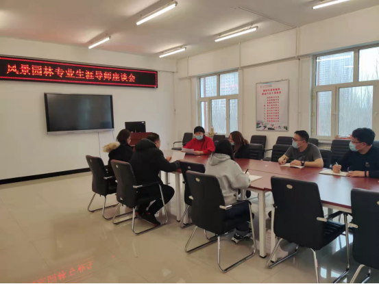 12月9日下午,风景园林专业在二号教学区2409会议室召开学期末生涯导师座谈会,风景园林专业全体教师参会,系办张怡老师和总务处绿化科高飞科长也一同参会,本次会议由风景专业负责人宋兴蕾老师主持。