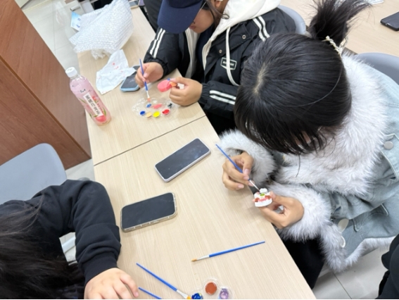活动现场氛围热烈而温馨,同学们一部分独自构思,专注地为石膏娃娃勾勒线条、填充色彩;一部分三五成群,相互交流创意,分享绘画心得。同学们表示,DIY过程不仅缓解了学习压力,还感受到了动手创作的乐趣,更增进了同学之间的友谊。
