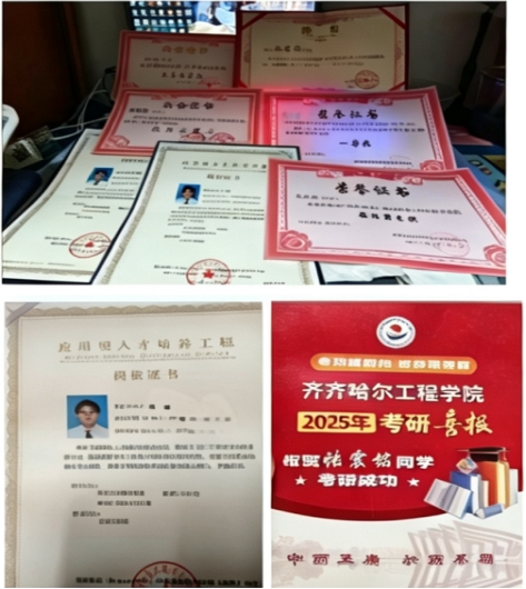 毕业深造后,张震铭成功考入齐齐哈尔大学攻读硕士学位,在新的专业领域持续深耕、精进不休,实现从本科到硕士的高质量进阶,用升学实绩展现齐工程学子的强劲后劲与卓越竞争力。